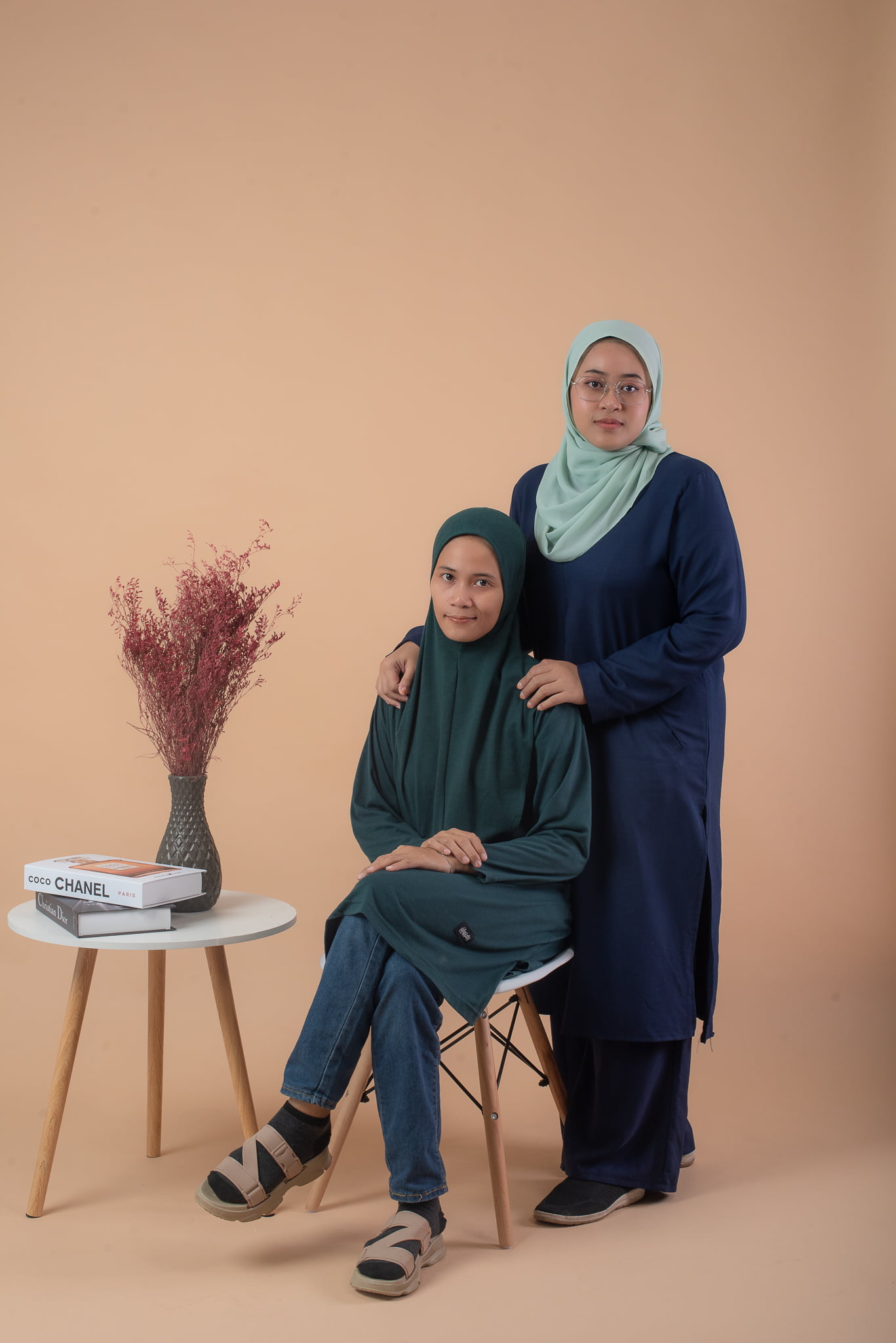 We have 4 plain colors namely black, white, grey and light orange suitable for portrait and fashion style photoshoot. The backdrop width could fit about 4 people in a row in single portrait shooting.